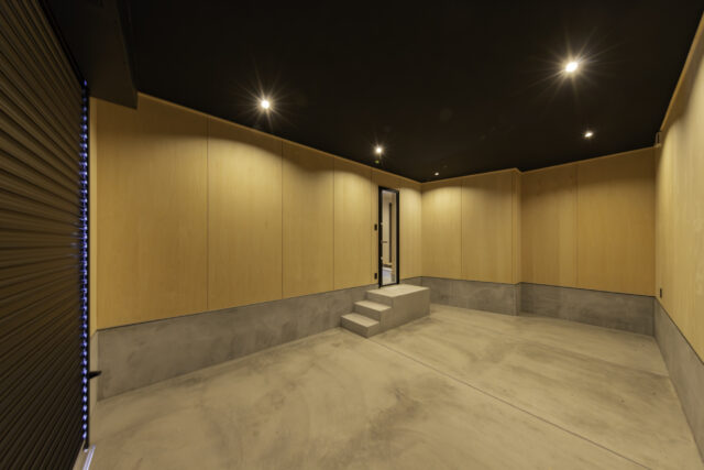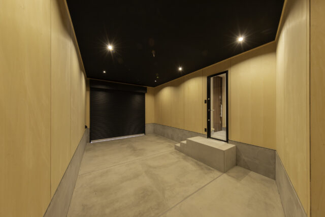 インナーガレージになっていて、愛車やアウトドア用品をしっかり守りつつ、趣味のスペースとしても活用できます。